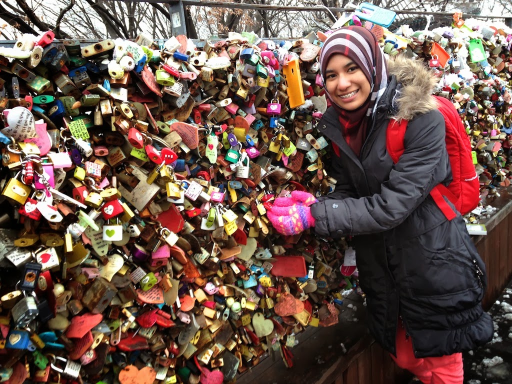 Bila dah mendaki punya daki bukit tu, (about 2km nak naik) baru lah sampai. Kat Namsan ni yang famous orang letak kunci and mangga sebagai simbol CINTA.